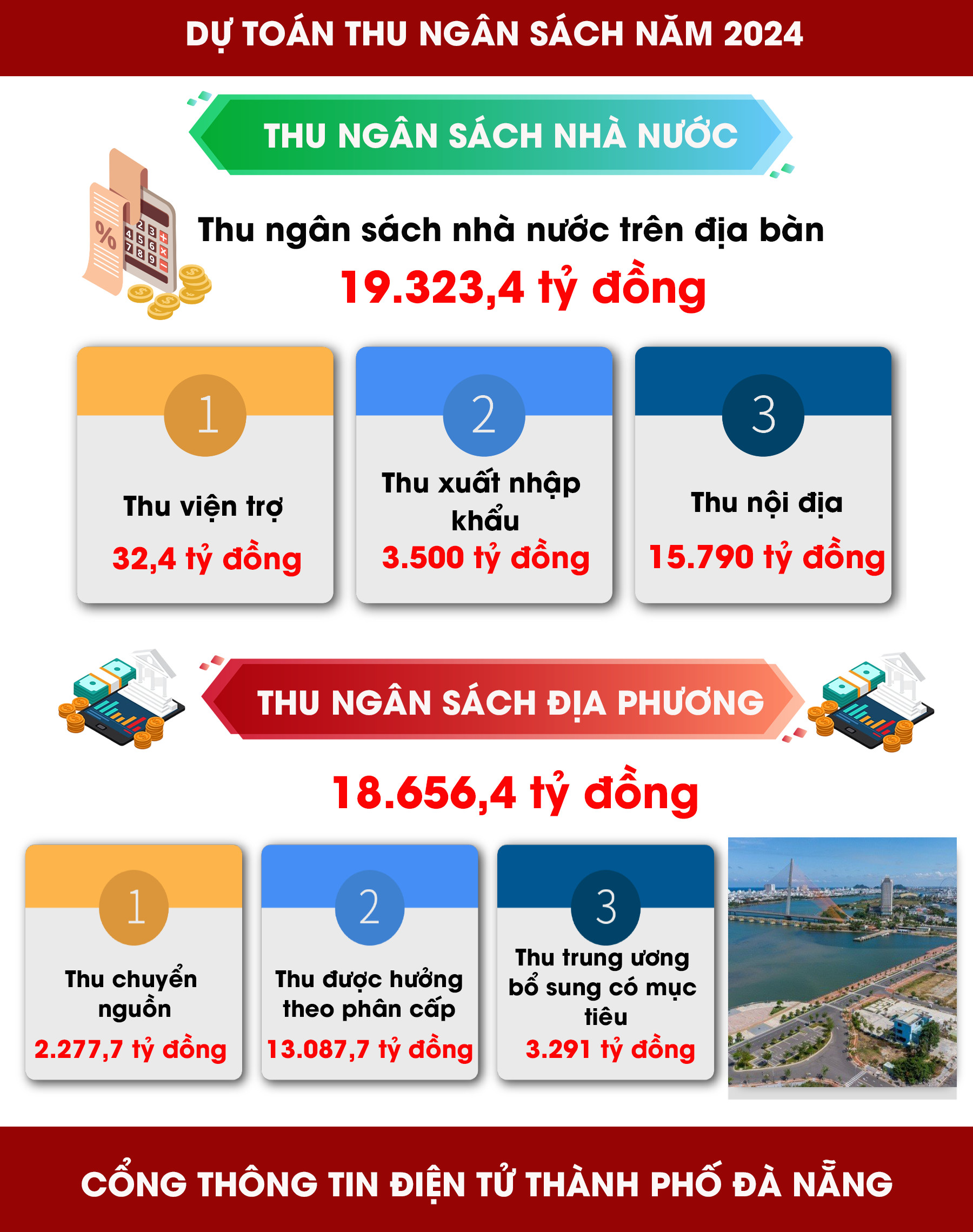 Ngày 14-12, tại Kỳ họp thứ 15, HĐND thành phố Đà Nẵng khóa X, nhiệm kỳ 2021-2026 đã thông qua dự toán thu ngân sách nhà nước năm 2024, trong đó, tổng số thu ngân sách nhà nước là 19.323,4 tỷ đồng.